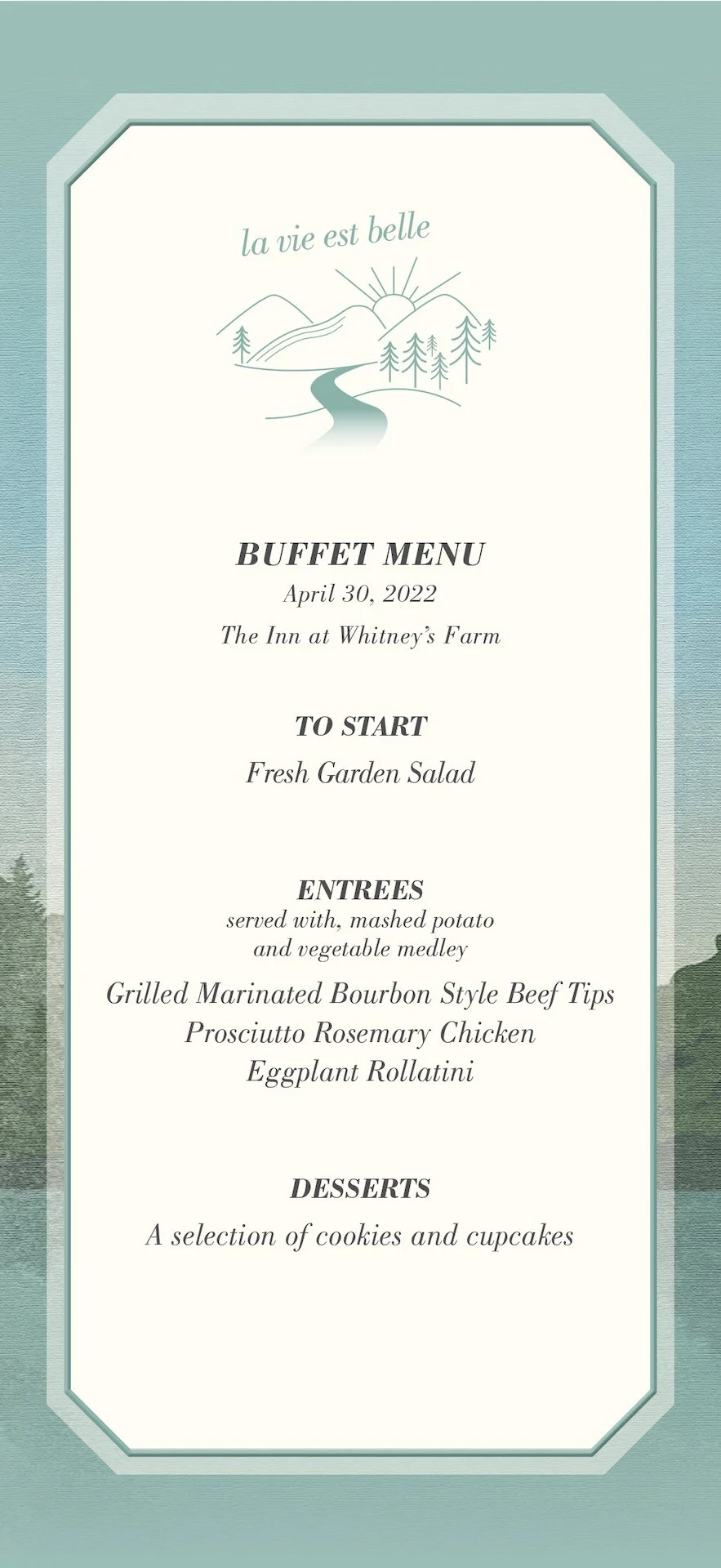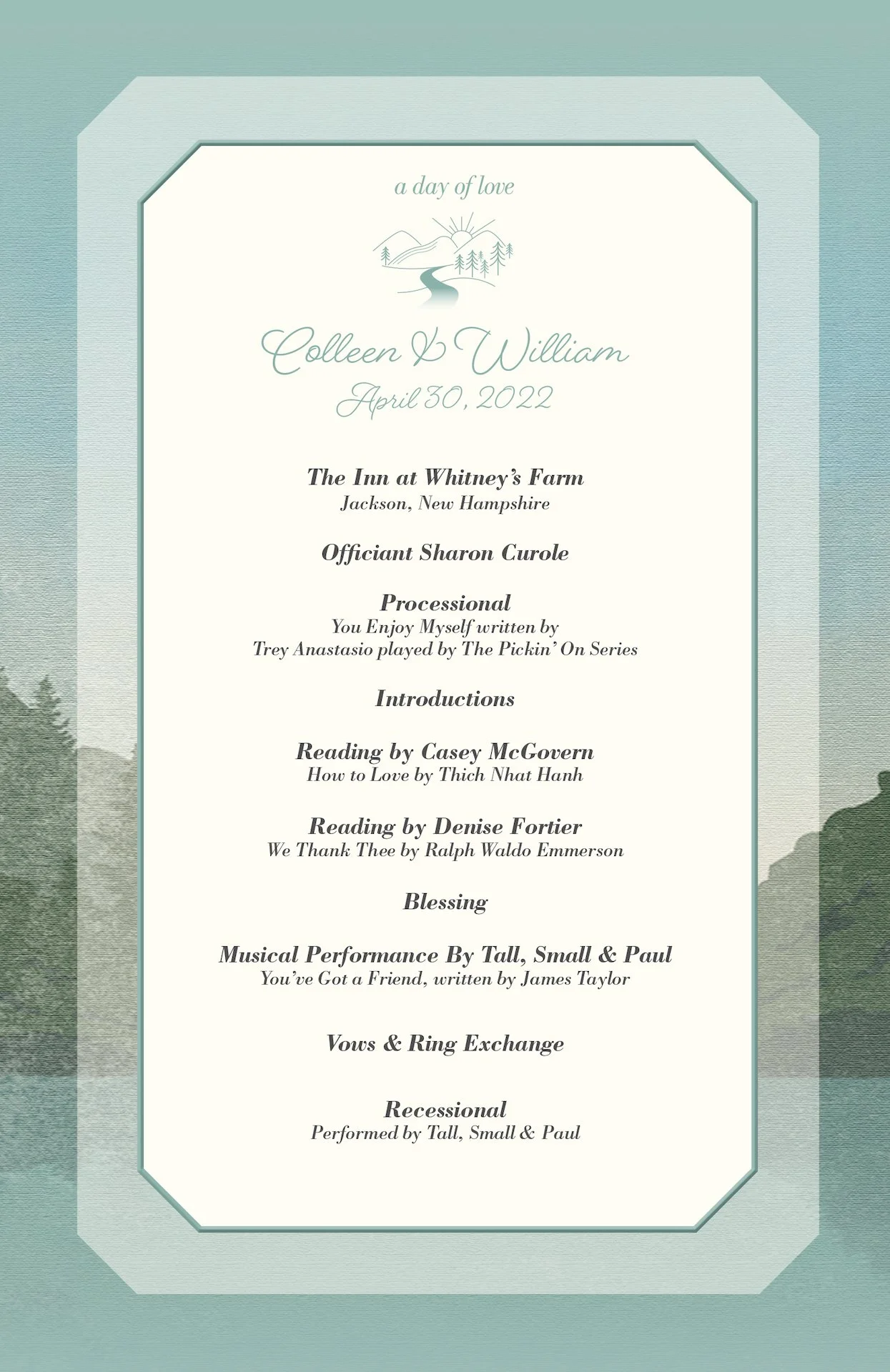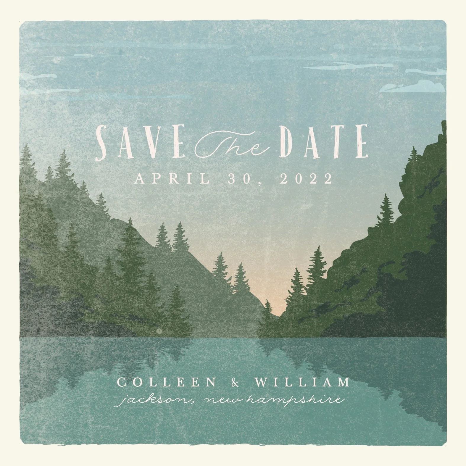I used a combination of original illustration, and licensed art and templates from minted.com in order to create my own wedding suite. You don’t often have time to paint a landscape, as well as design your invitations and website all while planning a wedding. The art from minted really set the tone for our dreamy celebration in the mountains of New Hampshire!